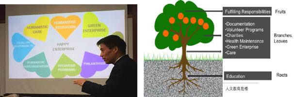 Mr. Wu’s presentation brought great interest to the participants and they came to a unanimous conclusion that the success of Good-Ark Happy Enterprise cannot be separated from the fact that Mr. Wu, as the majority share owner of the company, has taken the lead to fulfill all the promises that a corporate family culture can bring. Since he founded the business until today, Mr. Wu not only possessed the technical expertise and visions required to operate an electronics company, but he also has the resolve to venture into a Chinese management style that was unprecedented in China. He loves his staffs as if they were his children. He provides education opportunities for them to learn about ancient wisdom. He helps them to understand and fulfill their moral duties, naturally influencing them to grow into responsible persons who will not only contribute greatly to the wellness of their families but also to the wellness of the company, society and world peace. This is the vision of the western CSR campaigners and Good-Ark, without using too many terminologies, has moved forward years ahead of them. This intrigued the experts.